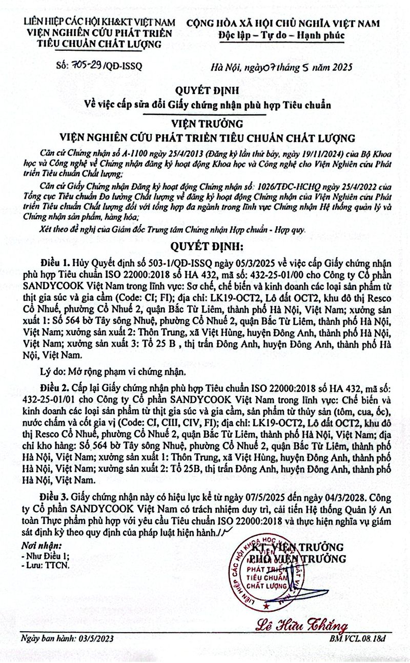 Chúng tôi cam kết xây dựng quy trình sản xuất khép kín, đảm bảo tiêu chuẩn vệ sinh an toàn thực phẩm và thân thiện với môi trường. SandyCook không chỉ chú trọng vào chất lượng sản phẩm mà còn đặt khách hàng làm trung tâm trong mọi hoạt động, với mục tiêu trở thành thương hiệu đáng tin cậy trong lòng người tiêu dùng Việt Nam và quốc tế.